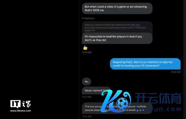 证据网上曝光的对话截图,Niko Wrex 沟通马斯克是否雇佣了他东谈主代打,马斯克回复称:"若是不这样作念,你根底无法打败亚洲玩家,他们即是这样作念的!但当我发布游戏视频或直播时,那 100% 是我本东谈主。"