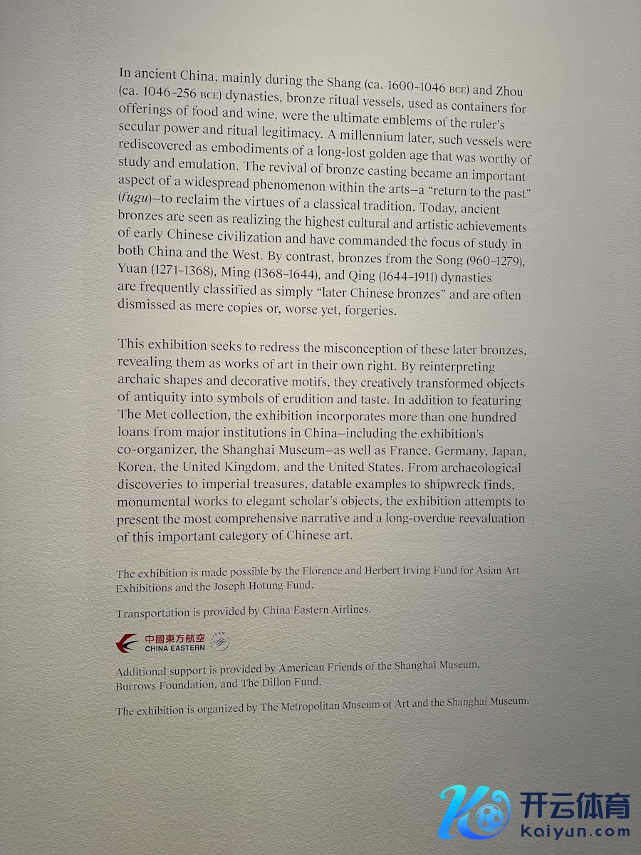 (原标题:东航全方向护航上海博物馆铜器赴好意思策展 航空+文旅赋能中外文化交流)开云(中国)Kaiyun·体育官方网站-登录入口 好意思国纽约当地技艺2025年2月27日,好意思国纽约大批会艺术博物馆“镕古铸新:宋元明清铜器特展”恢弘开幕。这场由上海博物馆与大批会麇集筹划的展览,收罗大众逾200件宋元明清铜器等艺术珍品,以器物之好意思证明中中时髦的传承与翻新。手脚展览中枢援手方,中国东方航空(以下简称“东航”)凭借航空运载硬实力与文旅交融软实力,为这场跨国文化盛事注入“东方动能”,助力中国文化